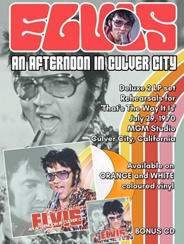 'I Just Can't Help Believin' - An Afternoon In Culver City' New Import Vinyl: The publicity notes... the Golden Globe label presents a fantastic 2 LP / CD collection featuring Elvis Presley's July 29, 1970, rehearsal held at the MGM Studio in Culver City, Los Angeles, California.