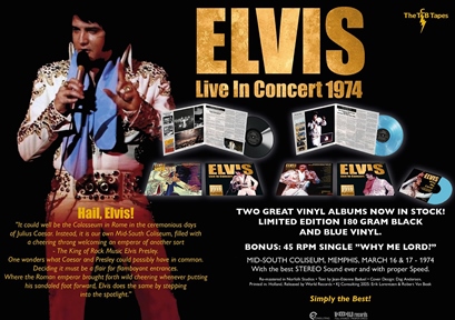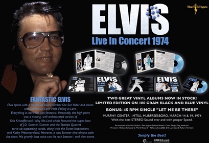 - Elvis Live in concert 1974 at MTSU Mufreesboro Tn'. Another two concerts from 1974 'Elvis live in concert at MTSU Mufreesboro Tn March 14 & 19' also a double album housed in two separate gatefold sleeves and a single.