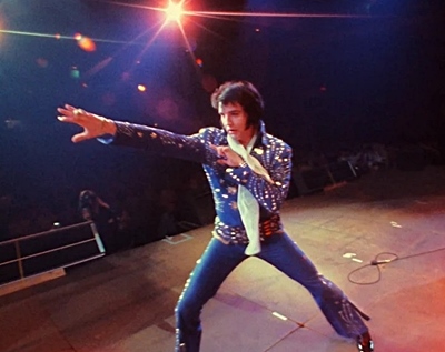The revivified concerts in 'EPiC' are a potent argument that Elvis wasn't just a superior live performer to the Beatles, but possibly the greatest live performer of all time. His sensual, magmatic charisma on stage, the way he conducts the large band and choir, the control he has over that godlike gospel voice, and the sorcerer's power he has to hold an entire audience in the palm of his hands (and often to kiss many of its women on the lips) all come across with stunning, electrifying urgency.