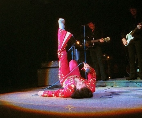 The musical and collegial cord that ties Elvis and his musicians as if they are his tentacles, also serves to emphasize the living- breathing- interconnected organism of the performance. Feral Ronnie. Quietly confident Burton. JD's reverent stare. Most highlighted are the vibrant Sweets. All of them sip from that life force that is Elvis and give him back their own.