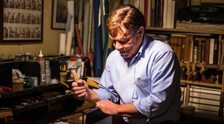 A lover of books, Paul learned how to bind them and restore them as a hobby. He teaches his craft to children in a local school and gives talks on the subject at several universities.