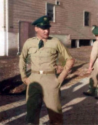 “1st Platoon was on the second floor. It only had two commodes and two showers for all of us. Elvis and I we'd cleaned floors, swept streets, we washed the garbage cans. We had this guy, it was the only time I remember anyone saying anything to Elvis about his uniform. He took his cap off, down in that garbage can and his Sergeant from an infantry company came over, and he wasn’t even in our outfit. He chewed Elvis out because he didn’t have his cap on. So I told my First Sergeant about it and the man got chewed out.”